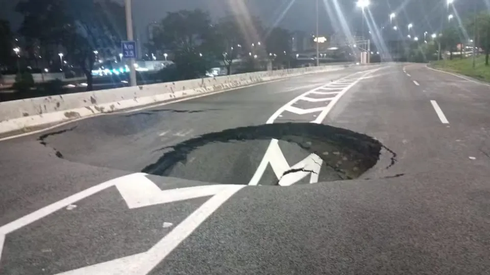 Em 10 de abril, a cratera havia aparecido após um dia de chuva forte e imagens mostravam água e terra no buraco. Com a interdição da pista, o congestionamento registrado havia chegado à marca de dez quilômetros por volta das 19h30.