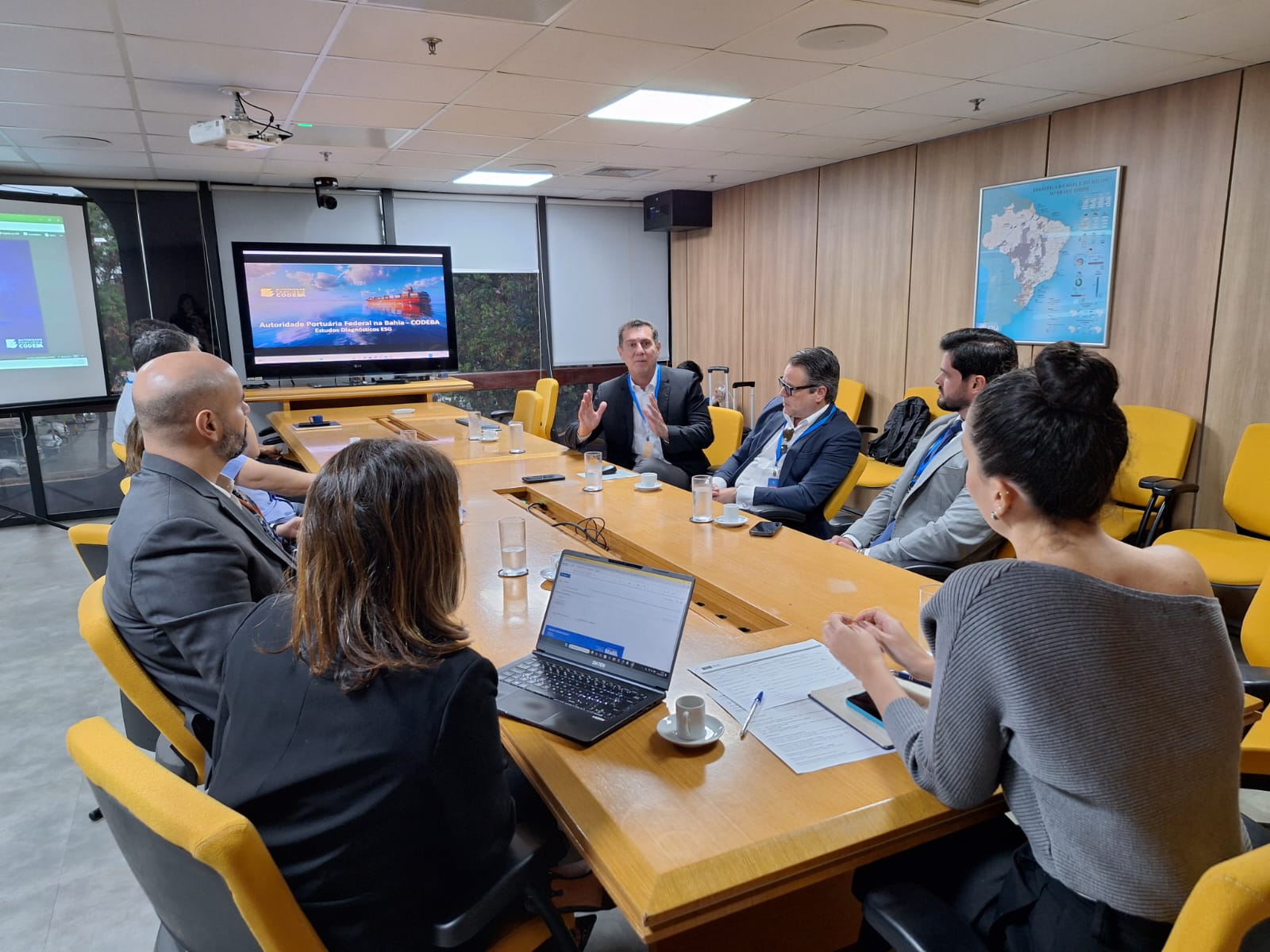 Em reunião realizada na Secretaria Nacional de Portos (SNP), em Brasília, a equipe técnica da Autoridade Portuária Federal – CODEBA apresentou o diagnóstico para práticas ambientais, sociais e de governança da Companhia (ESG, na sigla em inglês) e o plano de ação que, juntos, beneficiação as populações que vivem no entorno dos três portos públicos baianos: Salvador, Aratu-Candeias e Ilhéus. A apresentação foi realizada para representantes da Secretaria, do Ministério dos Portos e Aeroportos e da Agência Nacional de Transportes Aquaviários (ANTAQ) no final de outubro. A expectativa é iniciar a execução do projeto no início de 2026.