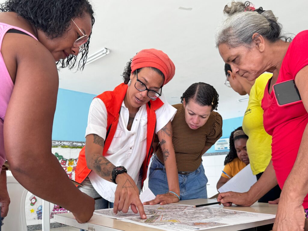 Na oportunidade, a comunidade pôde sugerir nomes para as novas ruas construídas pelo Novo Mané Dendê. Participaram da reunião os residentes dos bairros de Ilha Amarela e Rio Sena, que puderam ver no mapa de intervenções as seis novas vias criadas em seus bairros e sugerir os nomes delas.