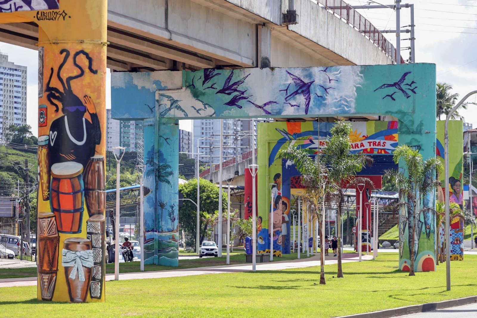 A Prefeitura de Salvador, através da Fundação Gregório de Mattos (FGM), promoveu a intervenção artística “Pilares da Cidade”, que transformou em uma galeria de arte a céu aberto mais de 25 estruturas do metrô, com alturas entre 8 e 10 metros, ao longo da Avenida Mário Leal Ferreira, mais conhecida como Bonocô. A decoração urbana integra a obra de revitalização de uma das principais vias da capital baiana, que deve ser entregue à população nesta semana.