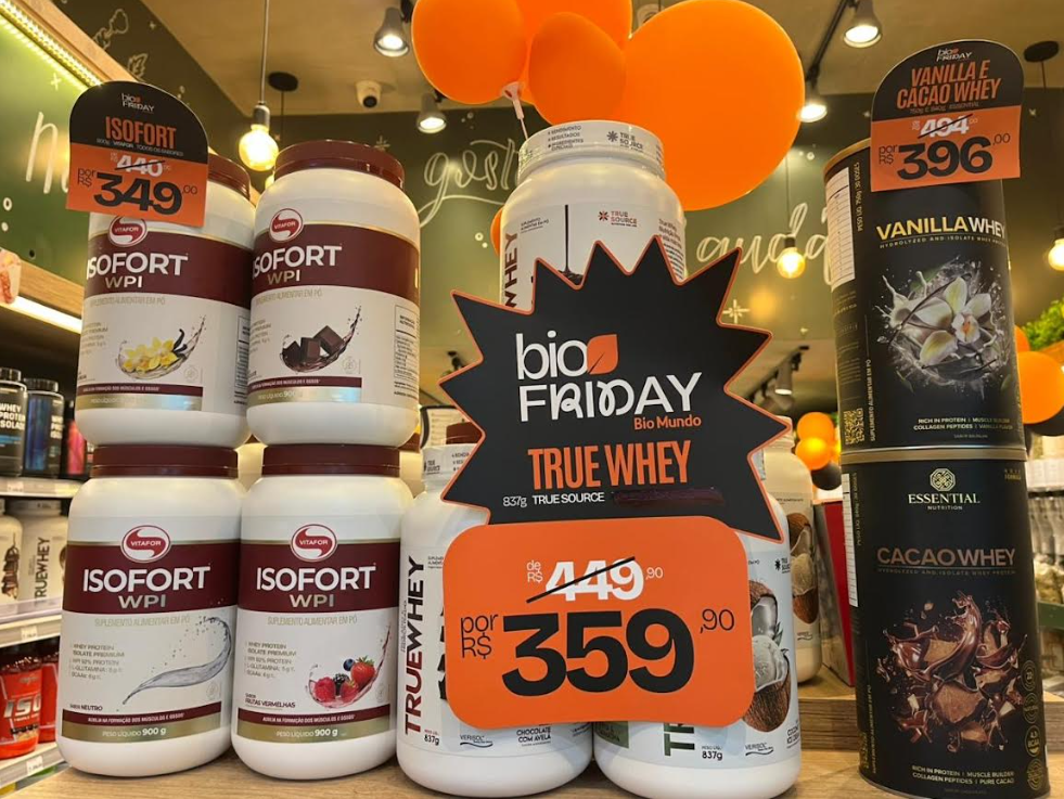 Bio mundo – Creatina da Bioway de R$ 179,99 por R$ 109,99; Super Coffee de R$ 249,99 por R$ 189,99; Whey Isofort com 20% de desconto, saindo por 359,90;